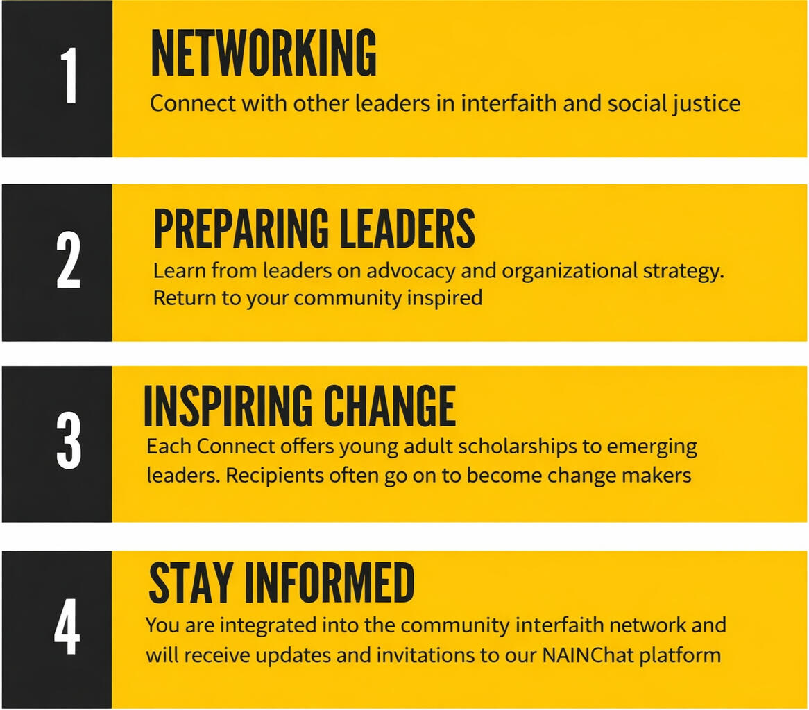 NAIN uplifts the efforts of local and national interfaith groups by providing visibility, networking, mentorship, and collaborative pathways that help initiatives grow and flourish.